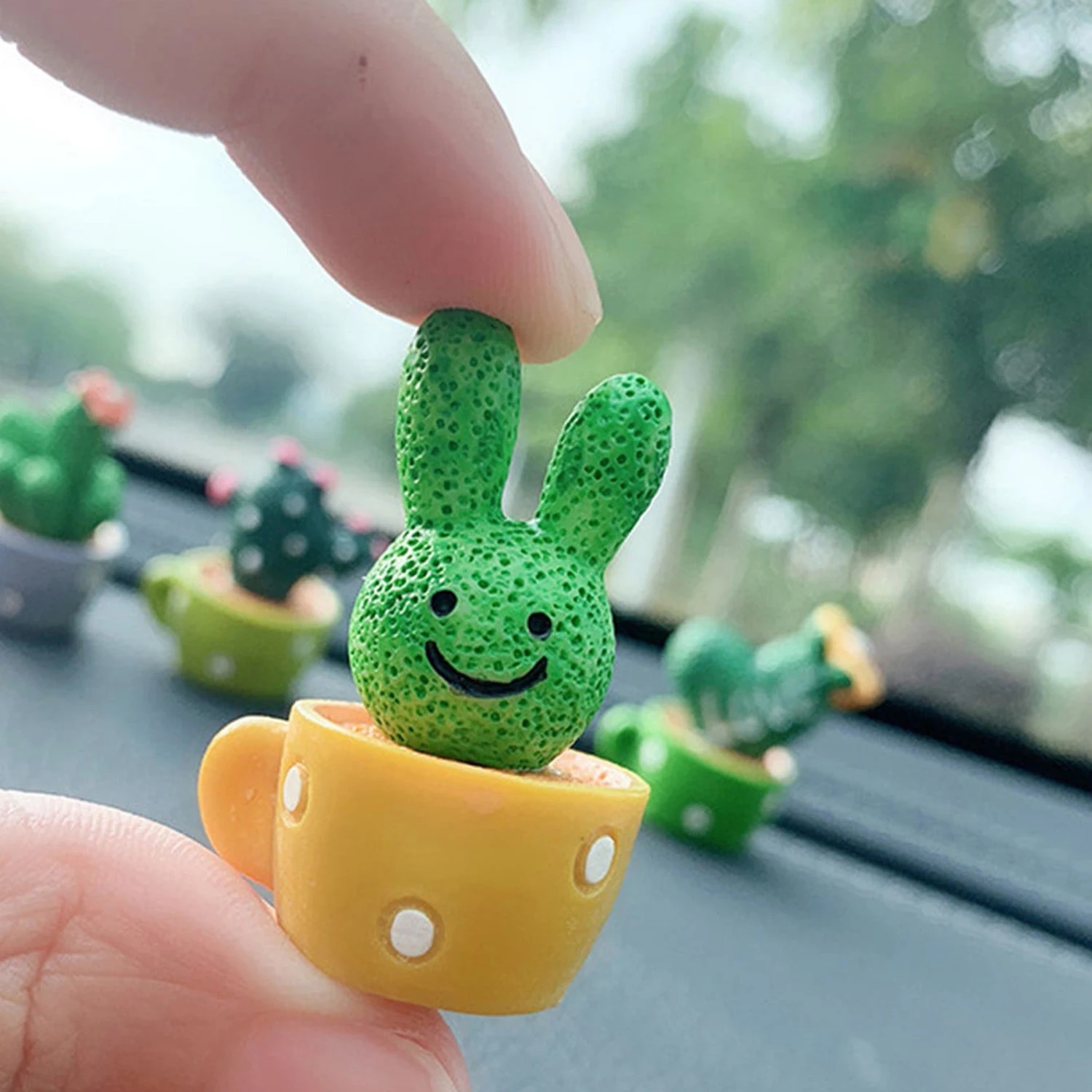 4pc/set Mini Simulation Succulent Cactus Resin Crafts Home Desktop Car Interior Decorative Ornaments