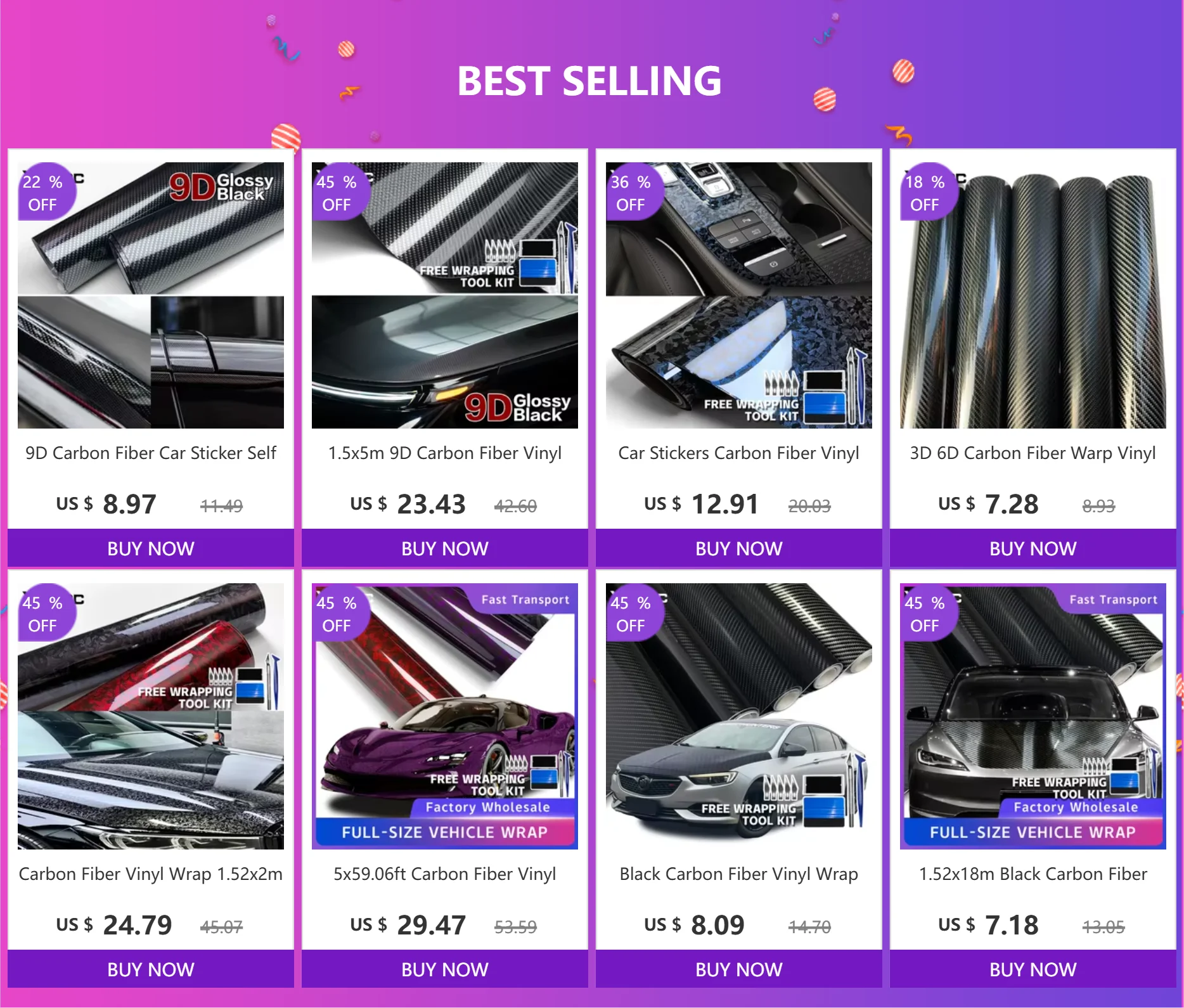 9D Carbon Fiber Car Sticker Self Adhesive Glossy Black Vinyl Wrap Film Anti-Scratch Auto Decoration Sticker for Cars Accessories