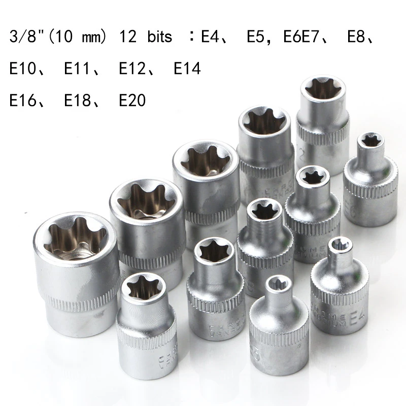 8Pcs 3/8'' Dr. E Sockets: E8,10,11,12,14,16,18,20