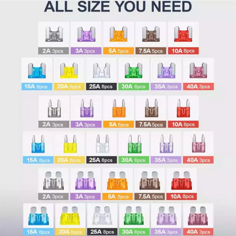 180Pcs Car Fuses Assorted Kit, 60 Mini Blade Car Fuse +60 Standard Fuse Automotive +60 Micro Fuse + Fuse Puller