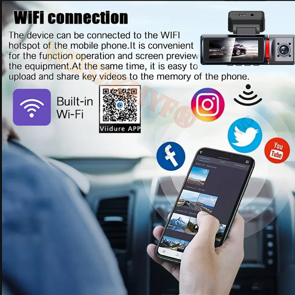 3-lens simultaneous display 1 Lens can be rotated Dash Cam for Cars WIFI APP Video Recorder 4K 1080P 1080P Car Dvr Rear View Camera Parking Monitor Black Box Car Assecories
