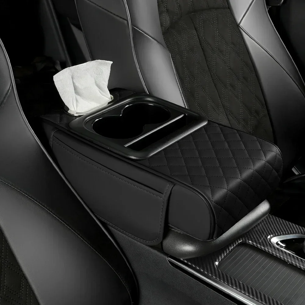 Car Armrest Box Thicken Height Pad Arm Rest Cushion with Pocket Tissue Cup Holder Memory Cotton Elbow Support Height Pad