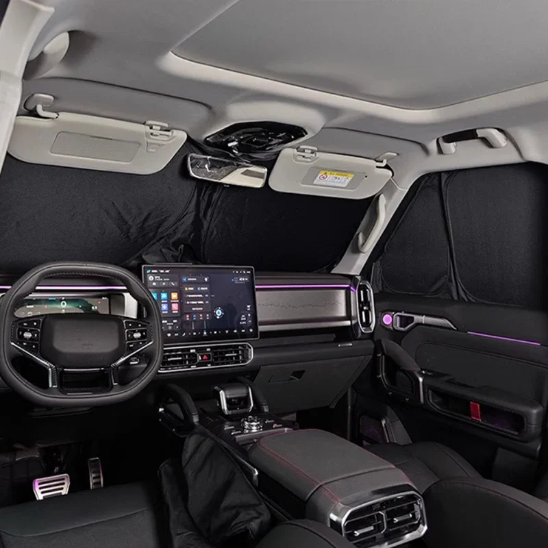 3.Efficient heat insulation and sun protection: Made of high-density fiber material, it can block more than 90% of ultraviolet rays and heat, reduce the temperature inside the car, and avoid interior aging and seat overheating.