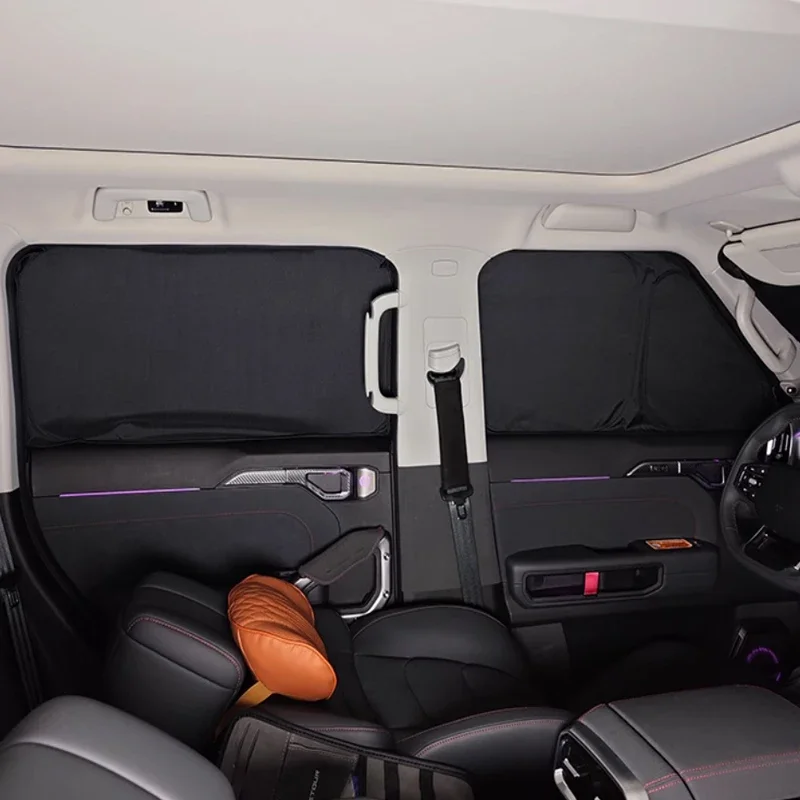 4.Double privacy protection: The privacy black veil and sunshade are designed in a double-layer manner, with the outer side providing shade and sun protection, and the inner side protecting the privacy inside the car, ensuring that personal belongings and behaviors are not peeped into while driving.