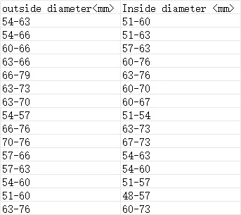 For example, if a 54mm pipe is connected to a 63mm pipe, purchase 57mm to 66mm