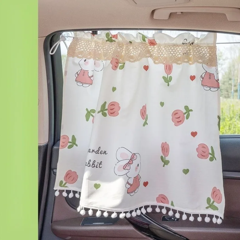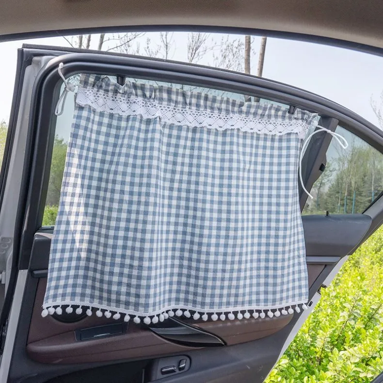 Car Side Window Sunshade Curtains Suction Cup Checkered Design Car Accessories Light-Blocking Lace Trim Car Privacy Curtains