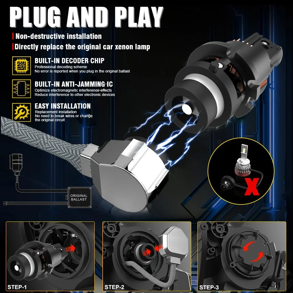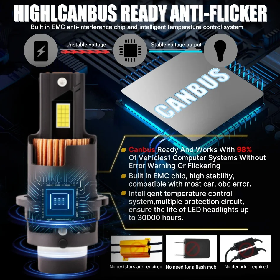 D2S D4S D2R D4R Led Car Headlight Canbus HID D1S D3S D1R D3R Led Xenon Bulb 1:1 Turbo Led Car Lamp Auto Light 6000K Plug & Play