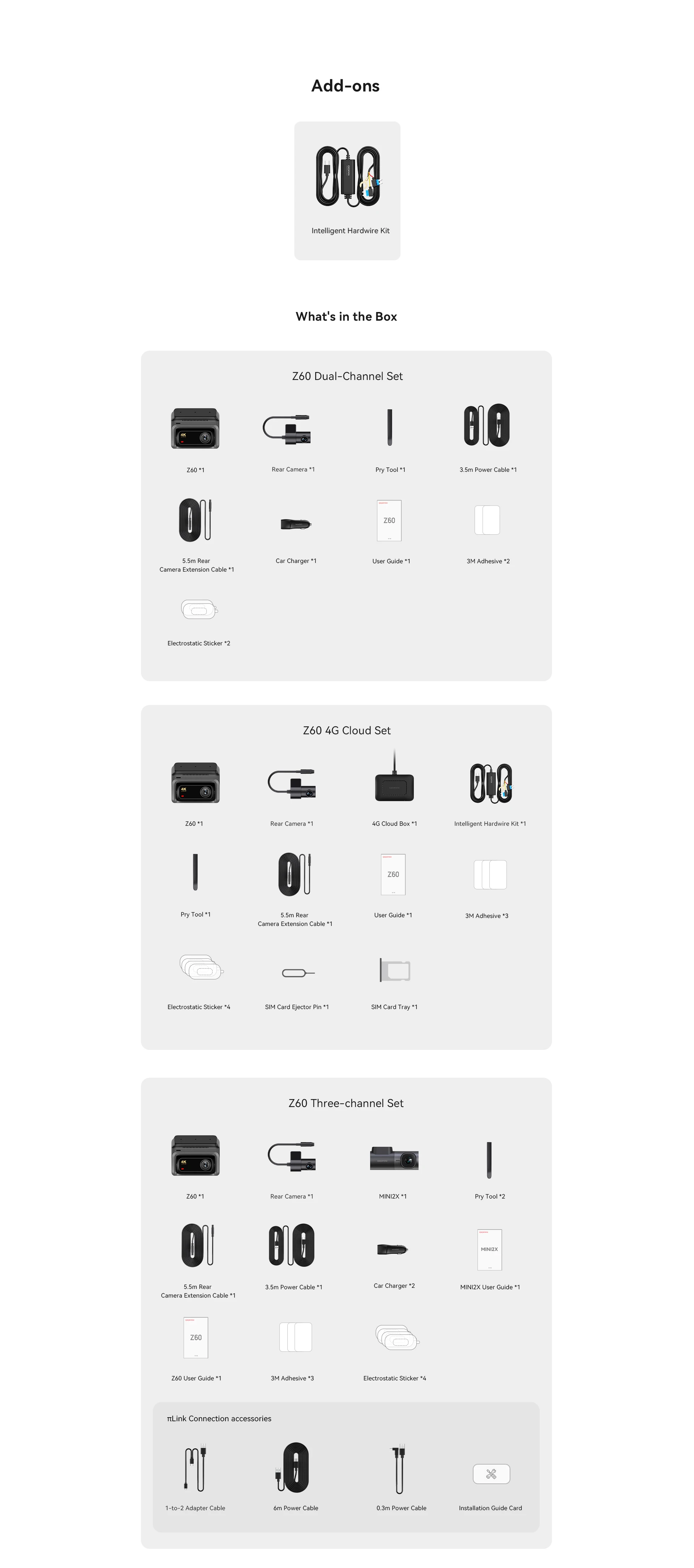 Z60-3CH: Three channel recording, Front +Interior + Rear.