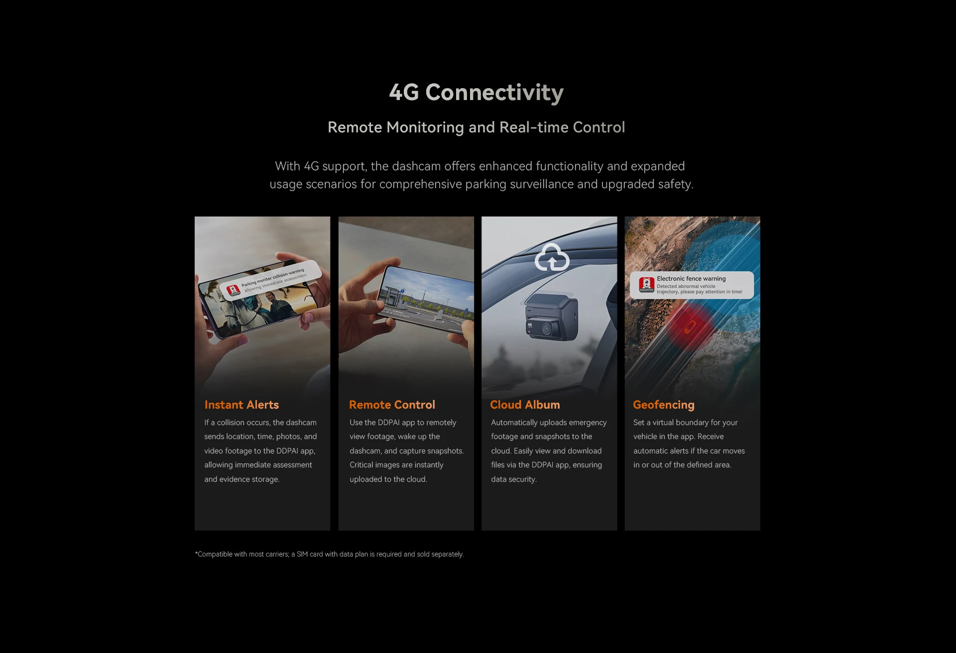With 4G support, the dashcam offers enhanced functionality and expanded usage scenarios for comprehensive parking surveillance and upgraded safety.