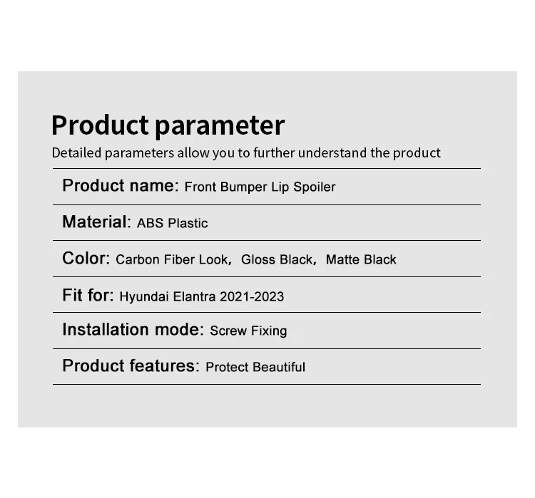 For Hyundai Elantra 2021 2022 2023 Car Front Bumper Splitter Lip Body Kit Spoiler Diffuser Deflector Decorative Strip Shovel ABS