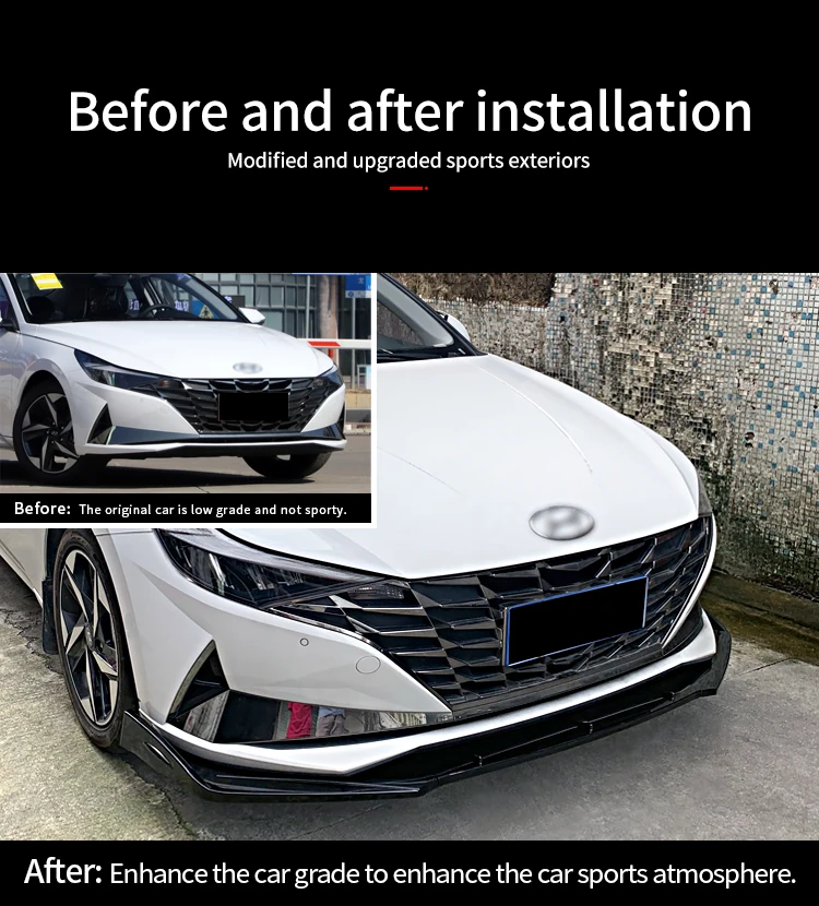 For Hyundai Elantra 2020 2021 2022 Car Front Bumper Lip Body Kit Spoiler 3Pcs
