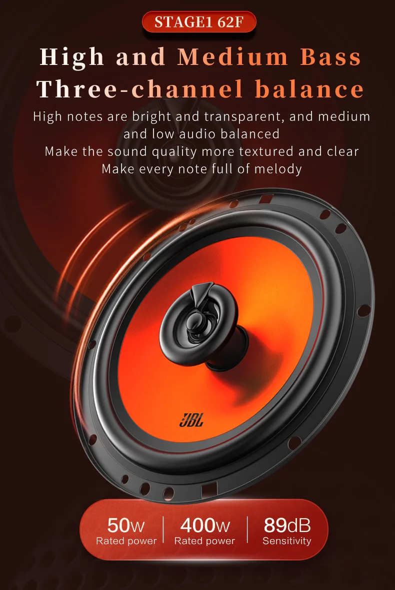 JBL STAGE1 62F is the latest coaxial speaker for JBL Auto Audio in 2025. Compared with the old STAGE1, STAGE2 and STAGE3 series coaxial speakers, this model is mainly improved and upgraded in the material and power of the speaker basin. The speaker sound basin of the new STAGE1 62F uses an improved polypropylene sound basin, which is better than the old injection molded polypropylene sound basin, and the clarity and low-frequency intensity of the new vocal instrument music are better. At the same time, the rating of the STAGE1 62F The power is 50W and the peak power is 400W. The power is significantly improved when the price is similar. Another advantage is the JBL's cone frame design, which is carefully designed to easily adapt to the speaker holes of most models without the need for complex modifications to the vehicle.
