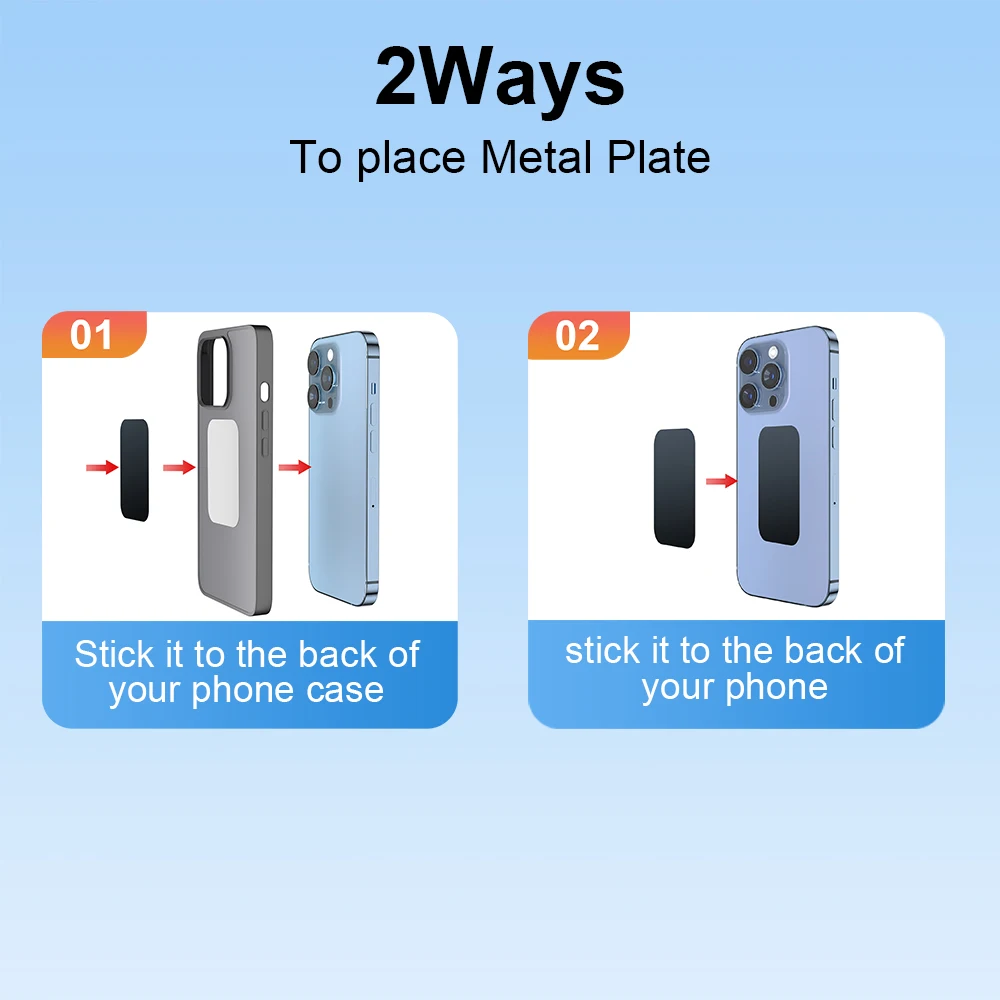 3. If your device cannot be attracted by a magnet, please be sure to attach the magnetic plate (iron plate) included with the product to the back of the device so that the product can be used normally.
