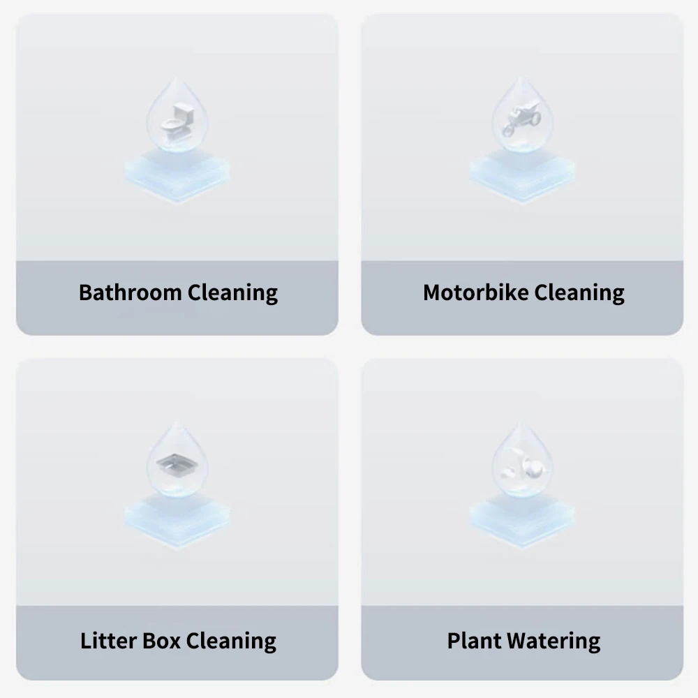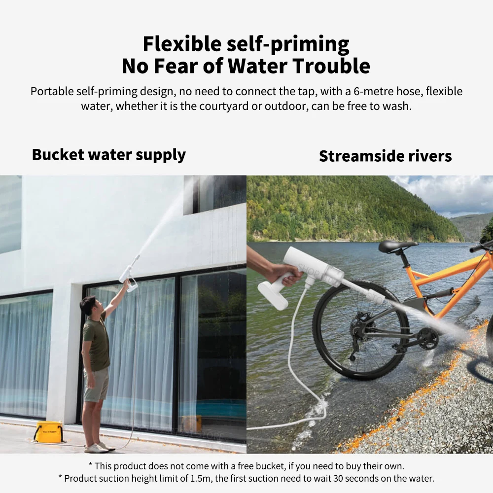 -2.4MPa self-priming strong water pressure, water output up to 180L /h, surging power to clean more efficient. Equipped with double plunger pump body, durable wear-resistant,smooth water.