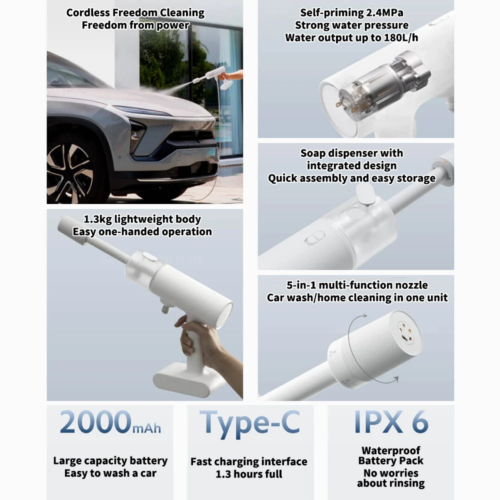 Xiaomi Mijia Electric Car Washer Gun 2.4MPA High Pressure Cleaner Foam Nozzle Auto Cleaning Care Cordless Car Washing Water Gun