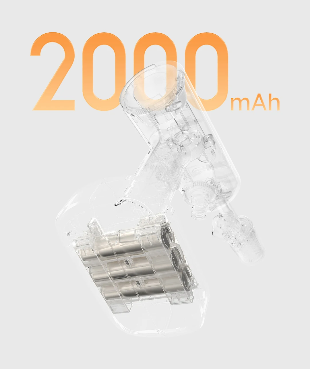 Built-in 2000mAh battery provides up to 15 minutes* of continuous use, freeing you from power outlets.