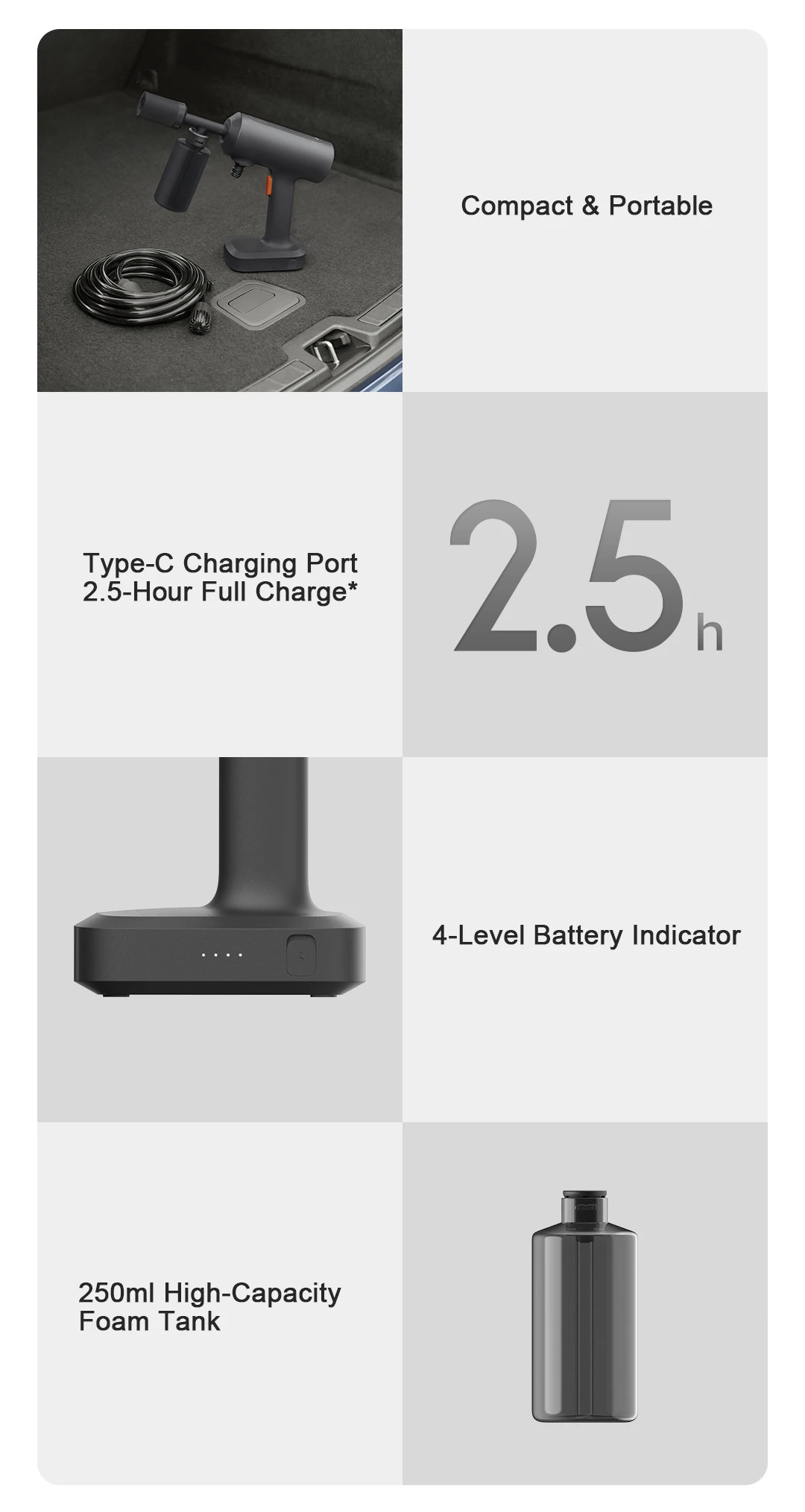Long-Lasting Battery,Wash a Full Car in One Go