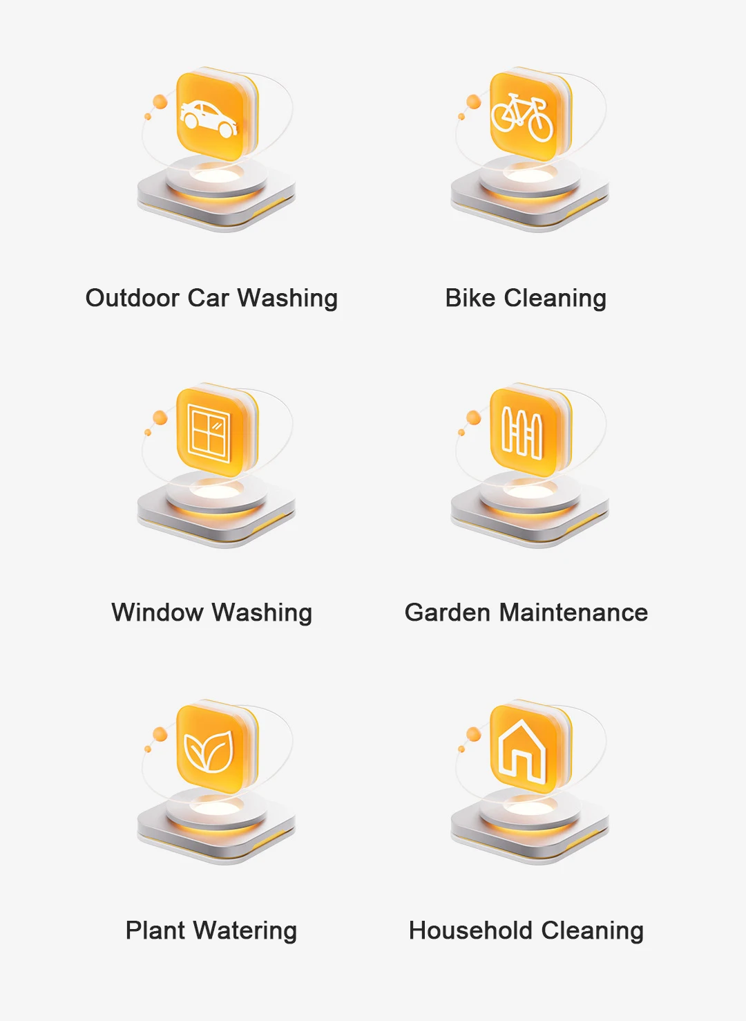 Delivers 160L/h* of water flow paired with 1.5MPa* pressure to blast away dirt from vehicles and tires, boosting cleaning efficiency.